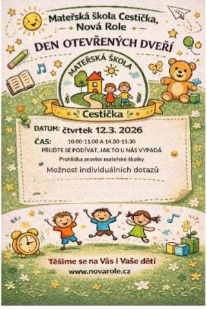 Mateřská škola Cestička v Nové Roli srdečně zve všechny rodiče a budoucí školáčky na prohlídku svých prostor. Přijďte se podívat, jak to u nás vypadá, a získejte odpovědi na vše, co vás zajímá.