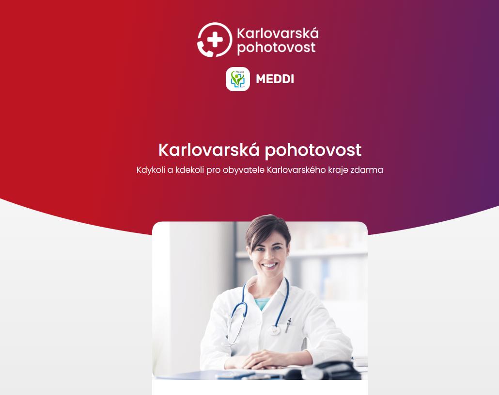 Mobilní aplikace, kterou je potřeba si pro komunikaci s lékařem stáhnout a zaregistrovat se do ní, se jmenuje MEDDI.app (jedna z možností je proklik z webové stránky www.karlovarskapohotovost.cz, pro stažení aplikace pro Google play i App store).