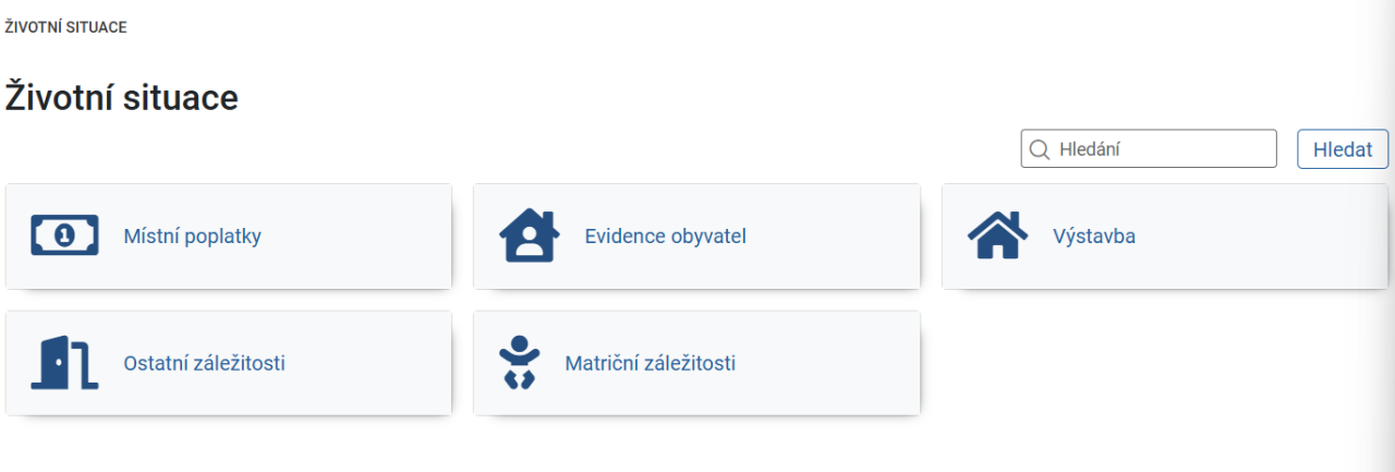 Přiblížíme si nejprve návody na řešení životních situací. Po kliknutí na příslušnou položku menu se vám zobrazí obrazovka s rozcestníkem.