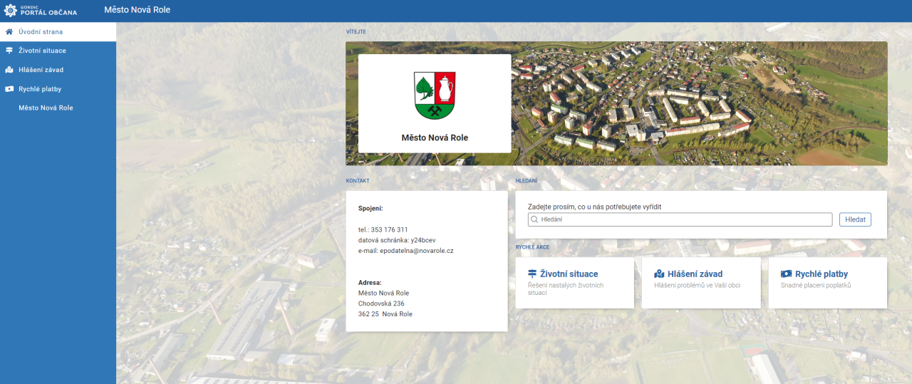 Přihlášení lze provést na adrese https://portal.novarole.cz/, případě kliknutím na odkaz na hlavní straně stránek města.