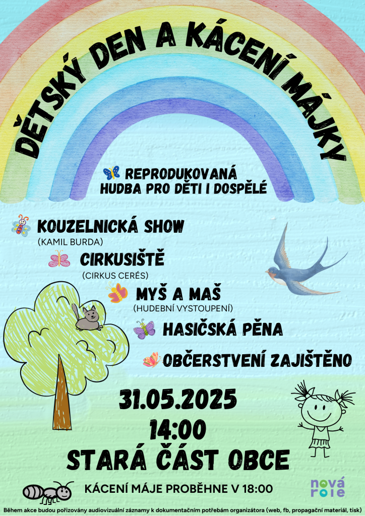 Tímto vás zveme na dětský den a kácení májky v Nové Roli.